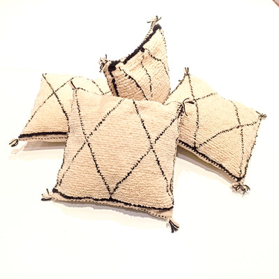 Los cojines Kilim están confeccionados con Kilims triviales antiguos, los cuales tienen unos diseños llenos de simbolismo. Los Bereber, se confeccionaban con un patrón similar a las alfombras: formas geométricas marcadas (en negro o colores de alto contraste) sobre, normalmente, lana blanca.