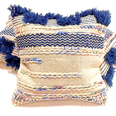 Estos magníficos cojines están confeccionados con algodón de primera calidad y algunos toques de lana. Predominan los colores blancos o crema, con algún toque de color. En este tipo de cojines abunda el uso de flecos y relieves en trenza dando un toque de alegría y dinamismo.